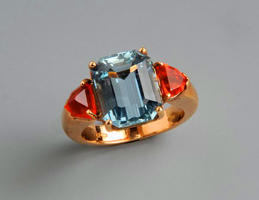 ANELLO SERPENTE IN ORO ROSA CON RUBINI, QUARZO GIRASOLE E CALCEDONIO